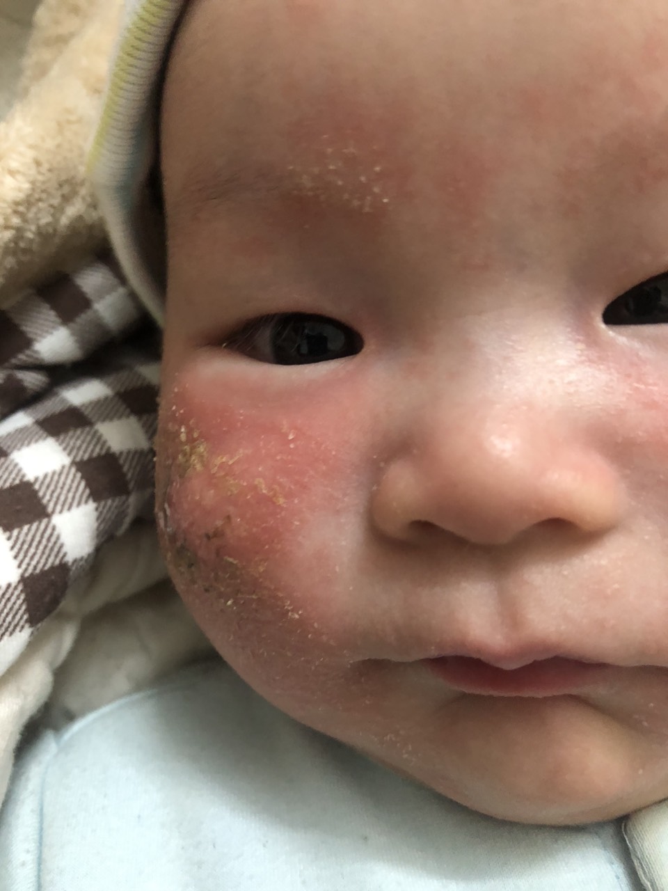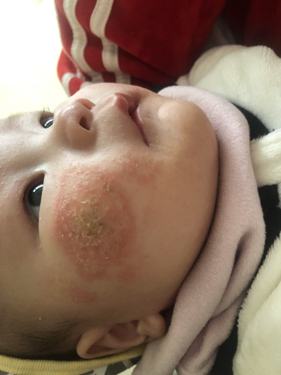 Từ 3m bắt đầu trên má xuất hiện 1 vết tròn như hắc lào đồng xu. Ngày 16/12/2023